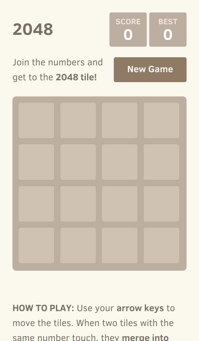CÓMO JUGAR: Utilice las teclas de flecha o desliza para mover las fichas. Cuando dos fichas con el mismo número se tocan, ¡se fusionan en una!